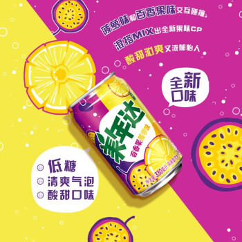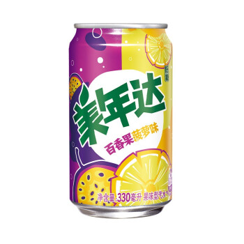 > 美年达可乐 Mirinda 百香果菠萝味 果味汽水 低糖酸甜 常规罐 碳酸饮料 整箱 330ml*24听