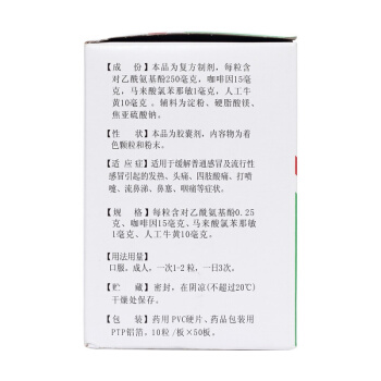 盖克 氨咖黄敏胶囊10粒/板感冒发烧头痛咽痛流鼻涕打喷嚏四肢酸痛 【10粒/板*50板】
